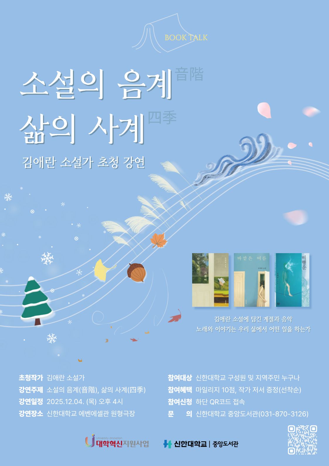 중앙도서관에서는 김애란 작가님을 초청하여 북토크를 개최합니다. 구성원 여러분의 많은 참여 바랍니다.