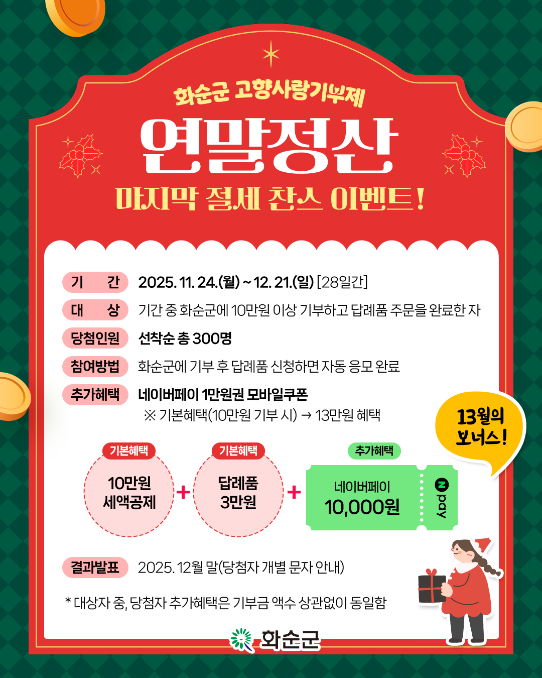 화순군 고향사랑기부제「연말정산 마지막 절세찬스!」이벤트 안내