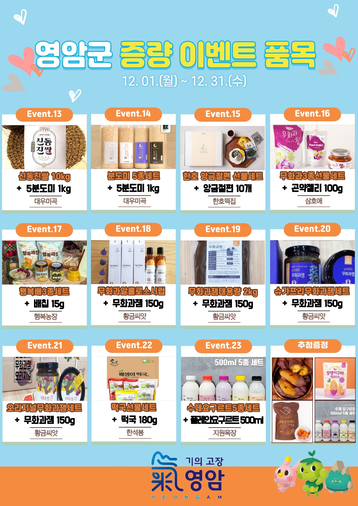 “영암사랑 듬뿍~ 12월 답례품 증량 이벤트!” 영암군 고향사랑기부제 이벤트 안내