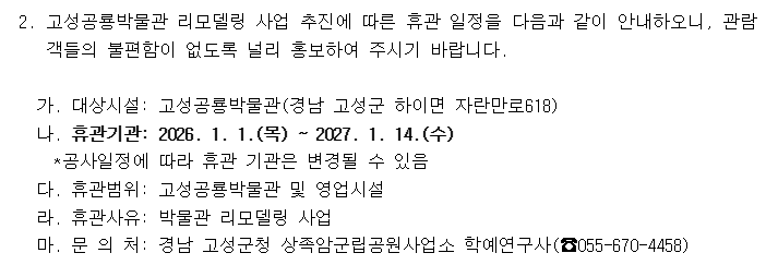 고성공룡박물관 리모델링 사업 추진에 따른 휴관 안내